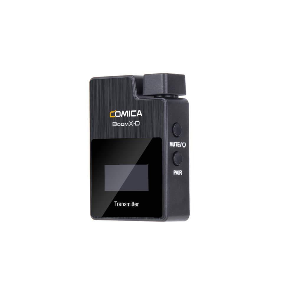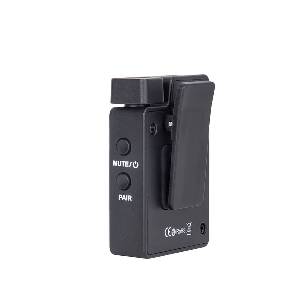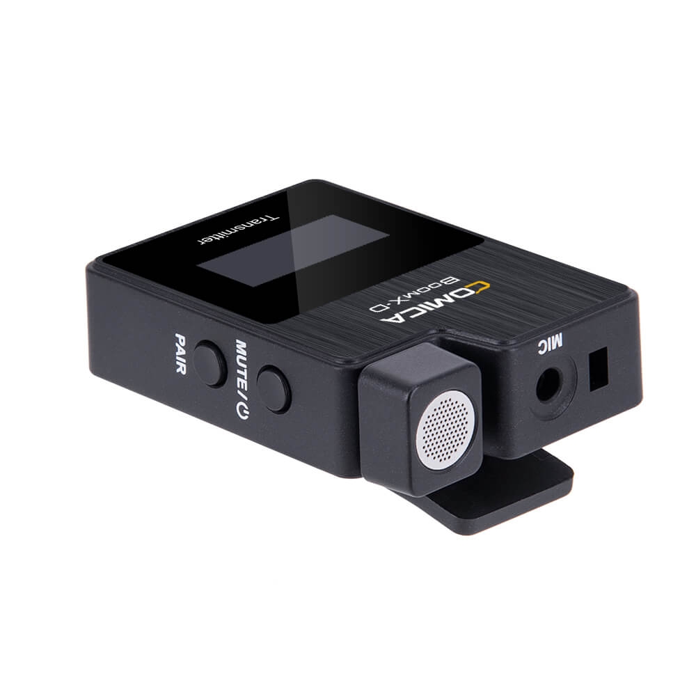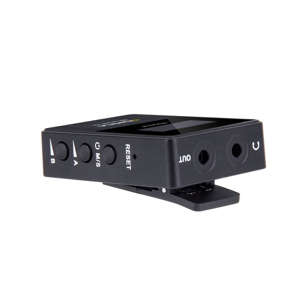 Nadajnik posiada wbudowany mikrofon oraz wejście mikrofonowe 3,5mm do którego można podłączyć mikrofon krawatowy. Nadajnik pełniąc rolę mikrofonu może być przypięty do ubrania lub nawet trzymać go w dłoni jako ręczny mikrofon. Odbiornik i nadajnik są fabrycznie sparowane i działają na zasadzie Plug-in-Play. Oba urządzenia mają wysokiej jakości wyświetlacz na którym możemy odczytać informacje na temat żywotności baterii, siły sygnału, poziomu dźwięku i i konfiguracji mono/stereo.