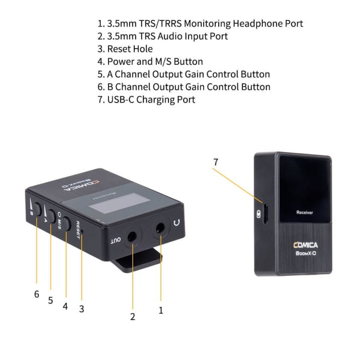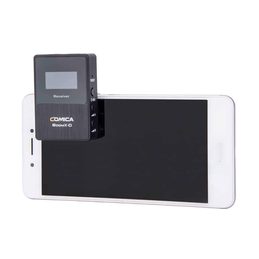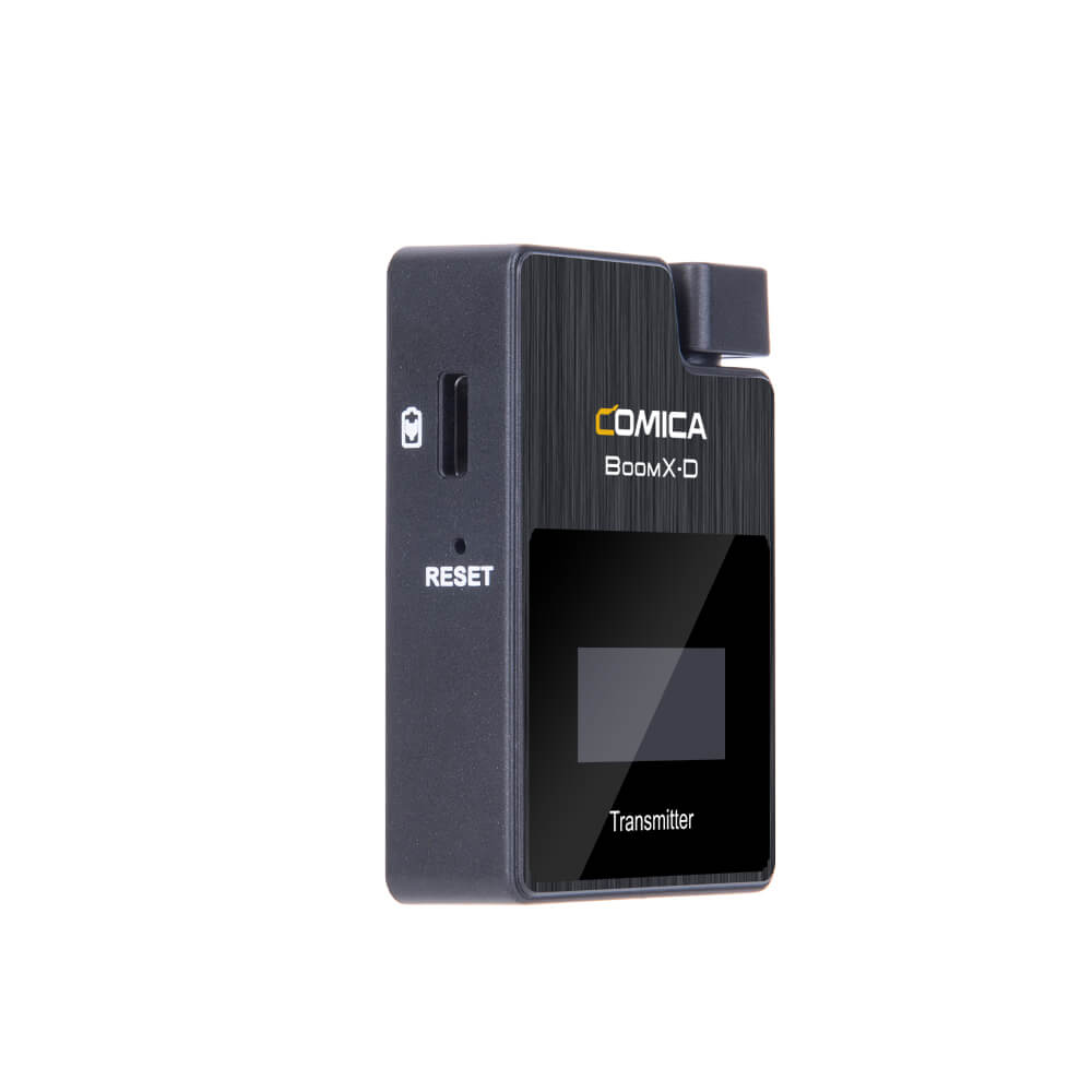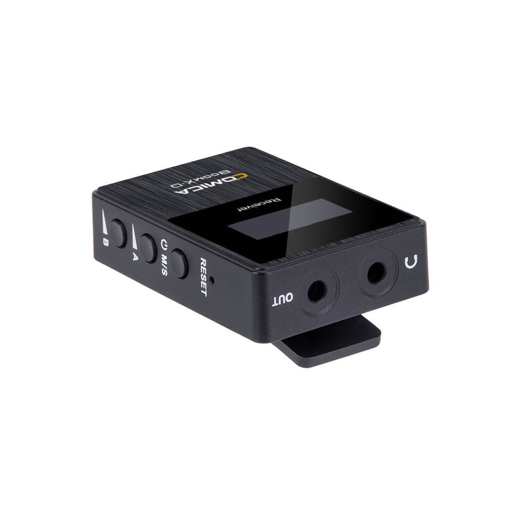 Nadajnik posiada wbudowany mikrofon oraz wejście mikrofonowe 3,5mm do którego można podłączyć mikrofon krawatowy. Nadajnik pełniąc rolę mikrofonu może być przypięty do ubrania lub nawet trzymać go w dłoni jako ręczny mikrofon. Odbiornik i nadajnik są fabrycznie sparowane i działają na zasadzie Plug-in-Play. Oba urządzenia mają wysokiej jakości wyświetlacz na którym możemy odczytać informacje na temat żywotności baterii, siły sygnału, poziomu dźwięku i i konfiguracji mono/stereo.