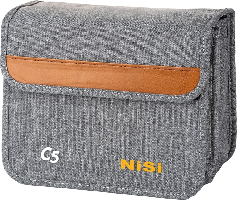 Dzięki systemowi filtrów formfitting, ultra-szerokokątne ujęcie przy użyciu ogniskowej 15 mm+ staje się możliwe, bez konieczności stosowania vinjettingu. Ta osłona mattebox NiSi ma wewnętrzną głębokość 26,5 mm i jest skuteczna w unikaniu odblasków. Zestaw startowy NiSi Matte Box C5 posiada design ze szczelinami powietrznymi na bokach, które zmniejszają opór wiatru. Górna klapa zbudowana jest z włókna węglowego i umożliwia ujęcia 180°. Masa wynosi tylko 350 g, co pozwala na używanie jej podczas fotografowania na gimbalu.